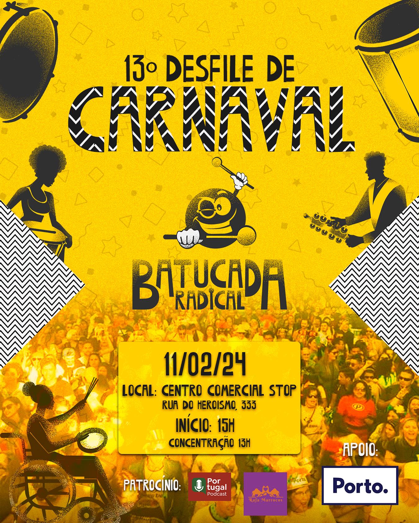 לקראת קרנבל 2024 הציפייה בשיאה, חוויה מרגשת ומעשירה מבחינה תרבותית מובטחת. בזכות מסורת ארוכת שנים של חגיגות תוססות, גם החגיגות של השנה אמורות להפתיע את המקומיים ואת המבקרים כאחד, בקצב הסמבה, המוזיקה הפורטוגזית המסורתית ועוד מוזיקה מכל העולם. אל תחמיצו את המצעד של "Batucada Radical 2024" , קבוצות של מתופפים ונגנים ברחובות העיר ביום ראשון, ה-11 בפברואר. כולם מוזמנים לרקוד, ליהנות ולשיר, נקודת המפגש תהיה ברחוב Rua do Heroismo 333, מרכז קניות STOP בשעה 13:00, ובשעה 15:00 יתחיל המצעד את דרכו ברחובות פורטו. העיר תתעורר לחיים בתצוגה דינמית של תלבושות, אווירה חגיגית והייחודיות של פורטו.